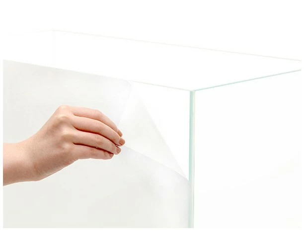 ADA Aqua Screen Foggy self-adhesive frosted glass film for aquarium is applied to the outside of the aquarium glass. The semi-transparent, whitish milky background film looks like a beautiful haze in the background or like fog.
