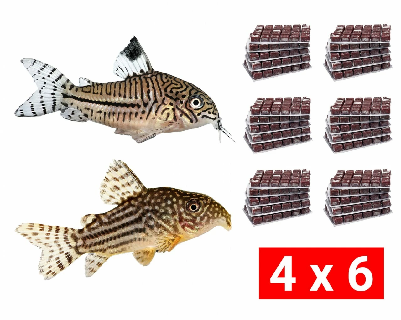 | Contents: | 24 bars á 4 varieties; 6 x Artemia with garlic, 6 x Daphnia, 6 x white mosquito larvae, 6 x red mosquito larvae |