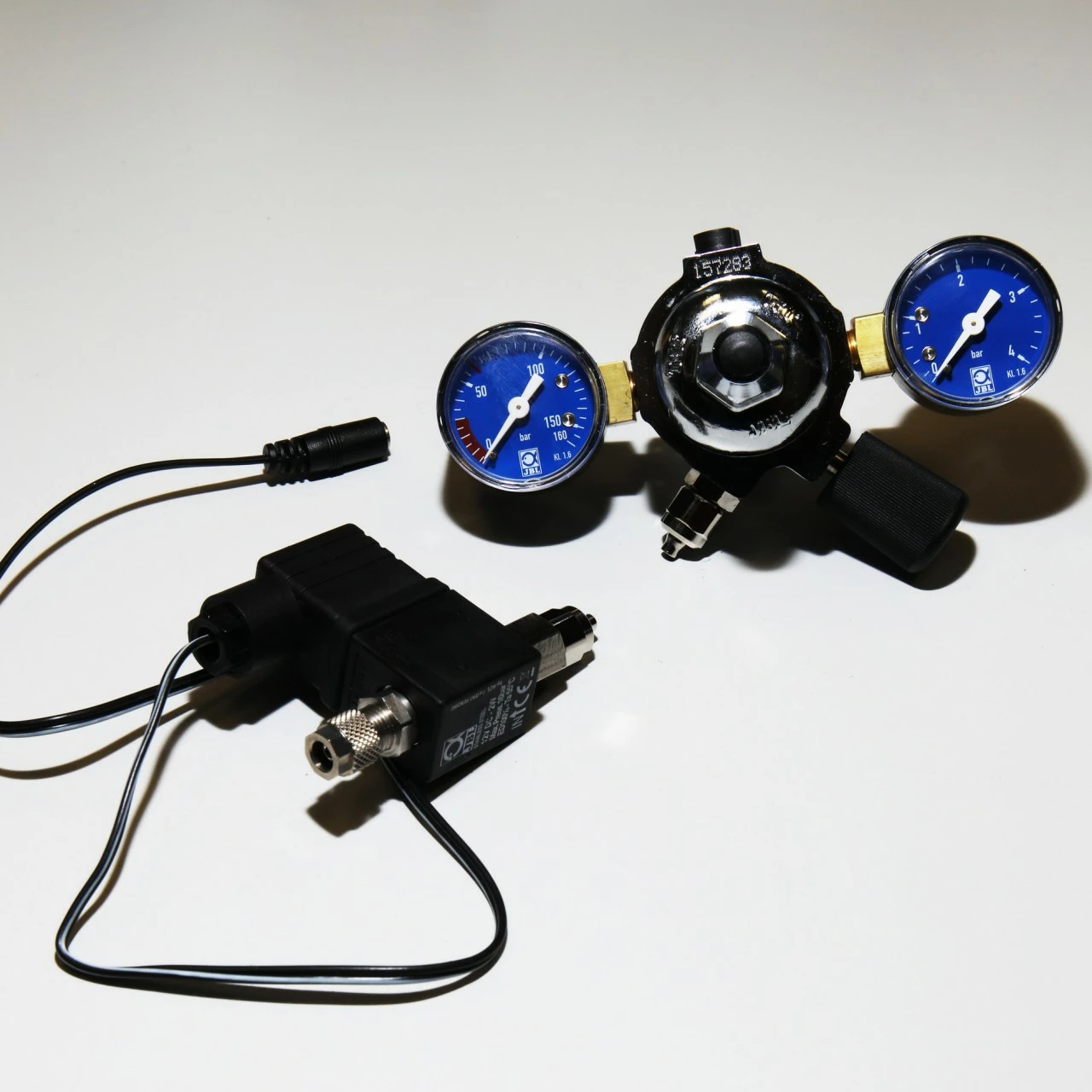 Since plants only need CO2 for photosynthesis during the lighting phase, you can turn off the CO2 supply at night. To relieve you from turning on and off the CO2 bottle, there are solenoid valves (JBL PROFLORA v002) that can be controlled by a timer. The timer then switches on the light and the CO2 supply via the solenoid valve in the morning and switches both off again in the evening. Clever calculators immediately recognize that the expense for a solenoid valve quickly pays for itself, since half of the CO2 is saved. It is always installed between the pressure reducer and the check valve. If you want to use a pH computer with automatic CO2 control, you also need a solenoid valve. This is then not switched via the timer, but via the pH control unit (JBL PROFLORA pH-Control Touch).